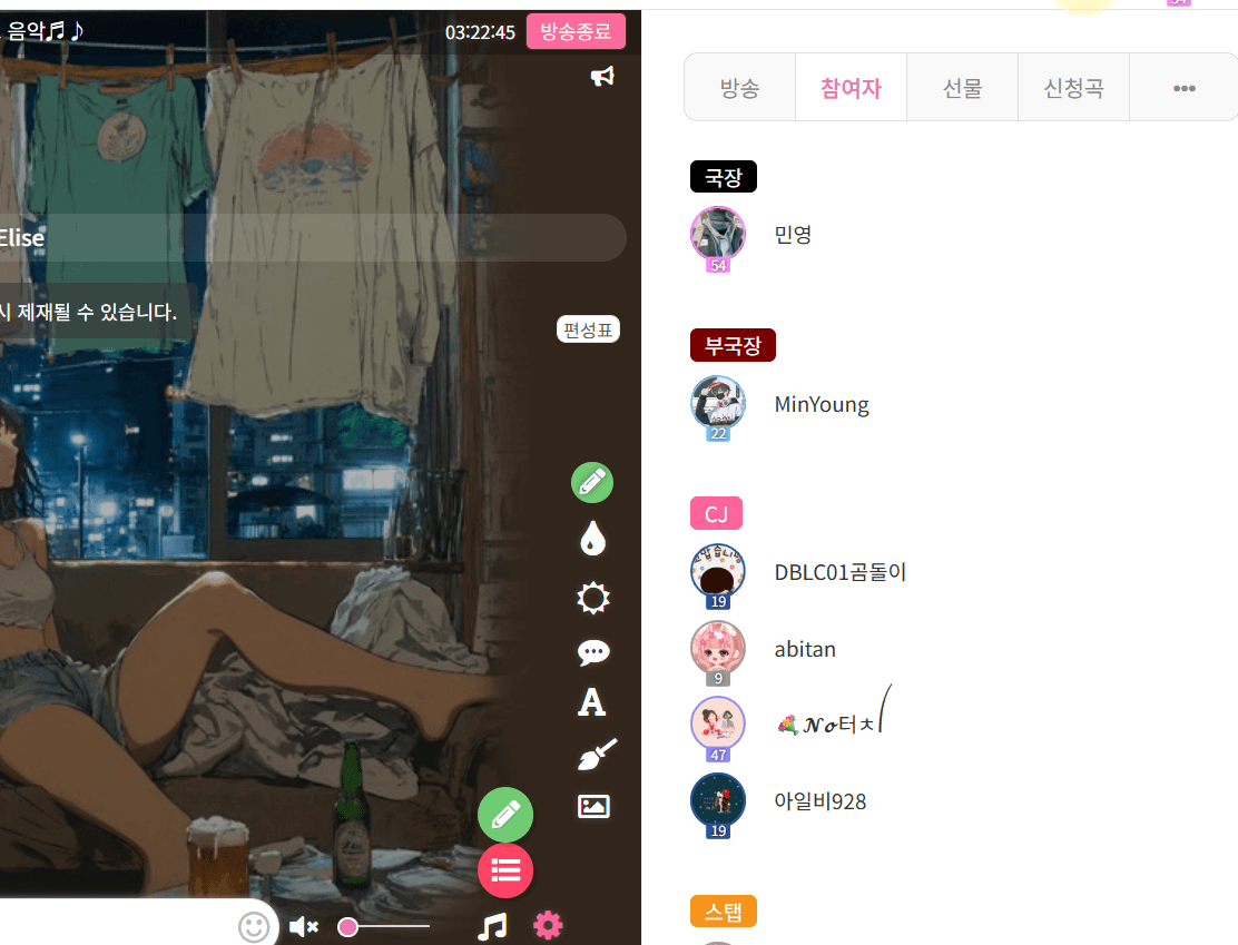 채팅방에서, 나가지 않고, 방송을 넘겨주는 방법입니다..